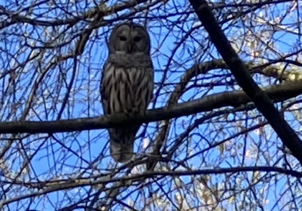 Bats and owls visit during the evening, but occasionally we see owls in the daytime, too. Here’s a barred owl:
