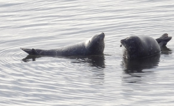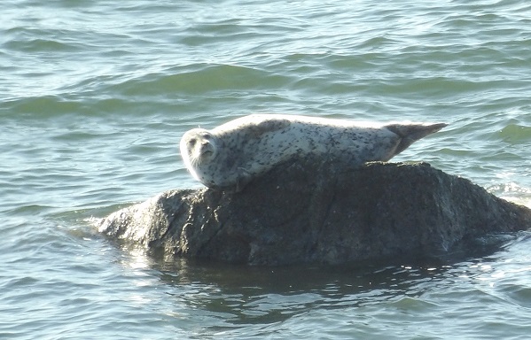 Seals are regular visitors when lower tides reveal rocks for basking in the sun. They will hang out until the rising tide floats them off.