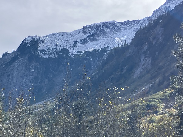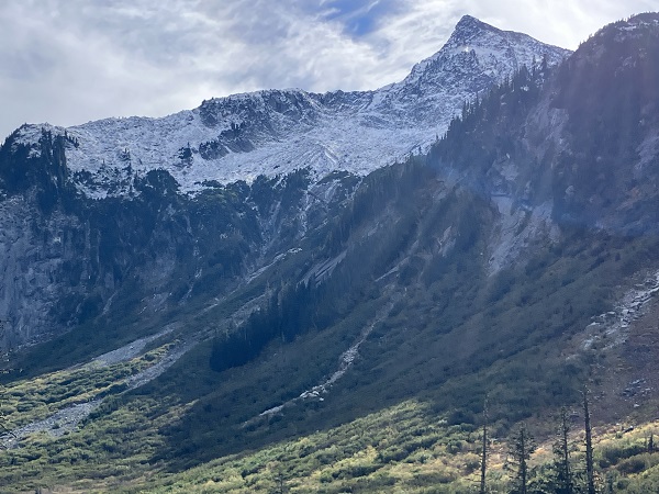 The weather was in-and-out clouds and sunshine, and the snow-dusted high ridges hinted at winter coming soon at this altitude.