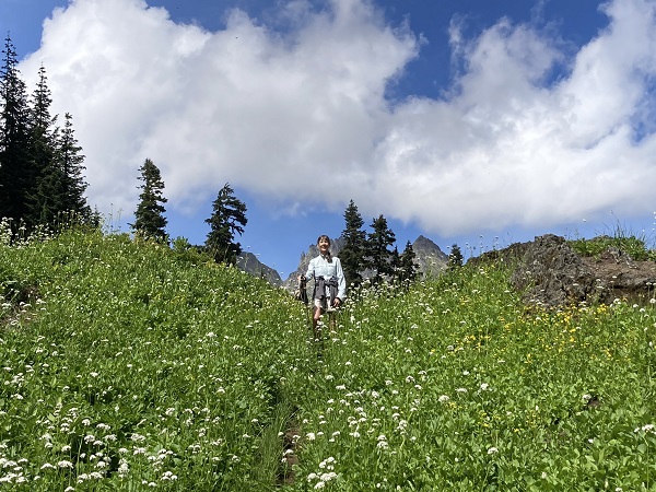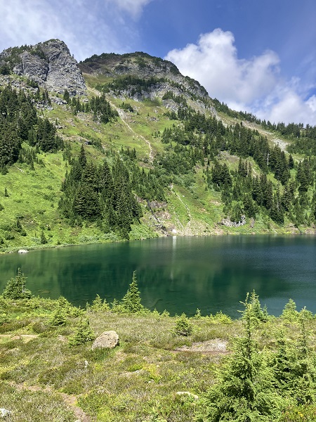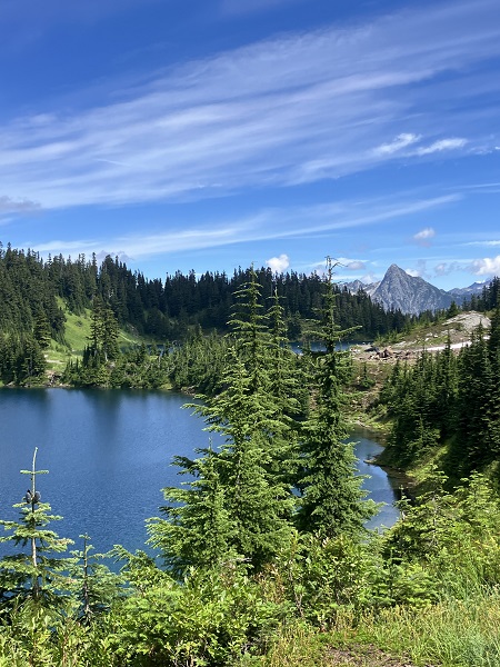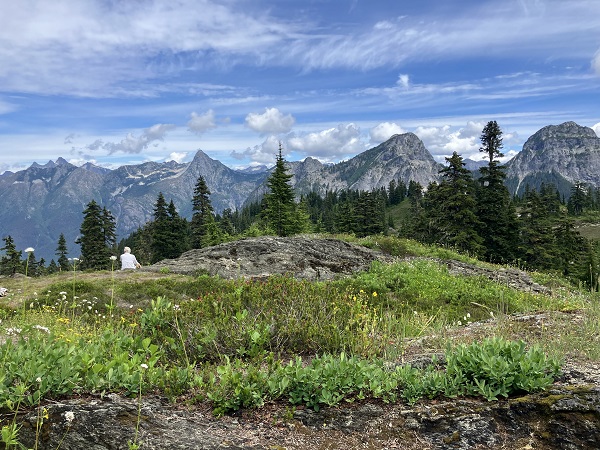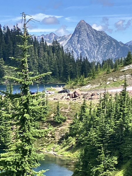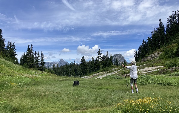 When Thor and I met in our fifties, our first “date” was a hike on Ptarmigan Ridge in the Mt. Baker Wilderness of our Pacific Northwest Cascade Mountains. Until recently, we have been hiking and snowshoeing those mountains regularly. Staying active and healthy all my life (as did Thor), I figured I’d be hiking until at least 90, like my dad who was hunting and fishing until 90. But “life happens,” and both Thor and I have been hit with unexpected health challenges in our early “golden years” of retirement. Working at rehab, we winced away from glimpses of the nearby mountains, but last week it was finally time to “carpe diem” and head toward Mt. Baker for what used to be a fairly easy hike up the track to Twin Lakes.