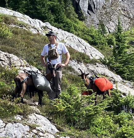 Back down at the lakes, we ran into this fellow heading into the wilderness with his pack goats.