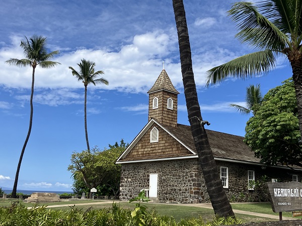 Depending on the weather and wind/chop of waves, we drive to different beaches or coves to find the best snorkel spots of the day. One day we found a new spot on a dead end road past fancy gated houses and this church. Keawa’i Church was founded in 1832.